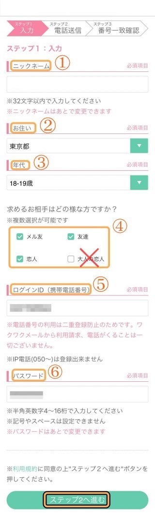 ワクワクメールに登録できなかったり、ログインできない場合は、まず電話番号とパスワードの入力を疑ってください。